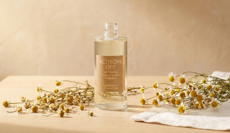 ACTISORB OPT: Optimized UV filter system for protecting the color and scent of perfumes and cosmetics exposed to radiation. INCI: Acrylates Copolymer, Ethylhexyl Salicylate, Ethylhexyl Methoxycinnamate, Butyl Methoxydibenzoylmethane